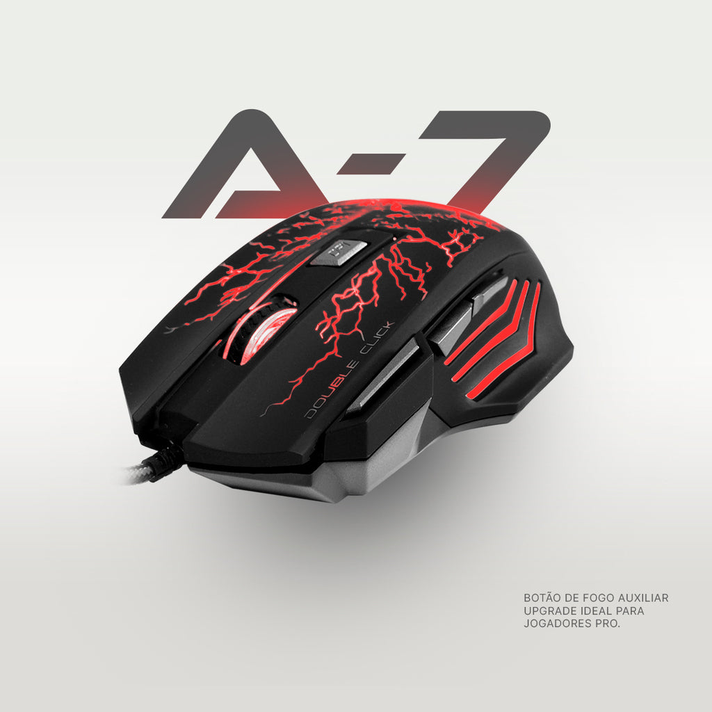 O Mouse Gamer PEI-A7 combina precisão, ergonomia e estilo para elevar seu desempenho nos games. Perfeito para jogadores que exigem controle e conforto em cada partida.
