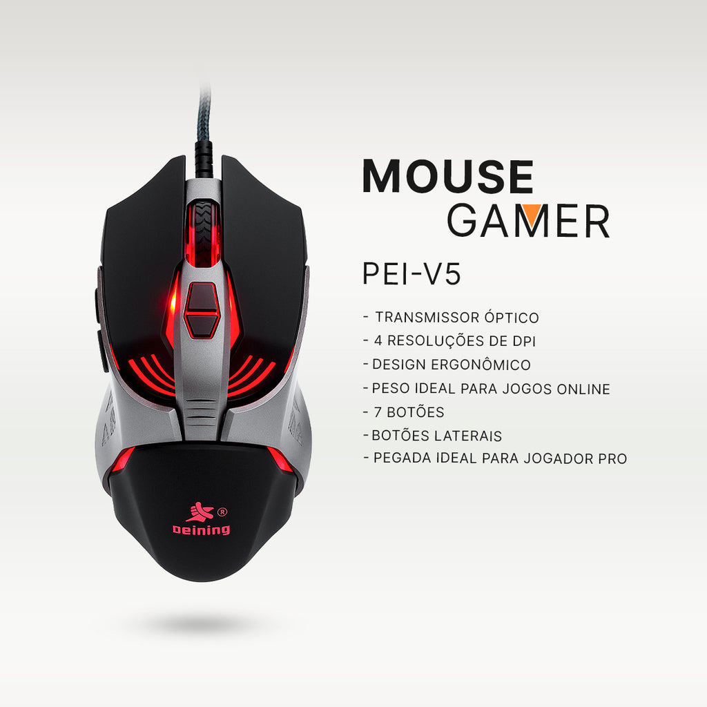 Adicione o Mouse Gamer Peining PEI V5 ao seu setup e experimente o controle real em cada clique.