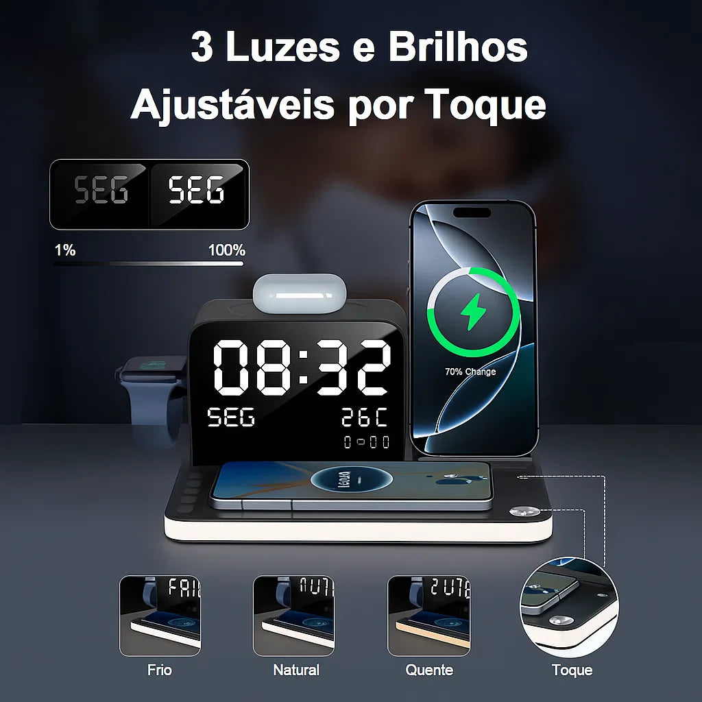 ⌚ Suporte para iWatch e AirPods com carregamento Wi-Fi